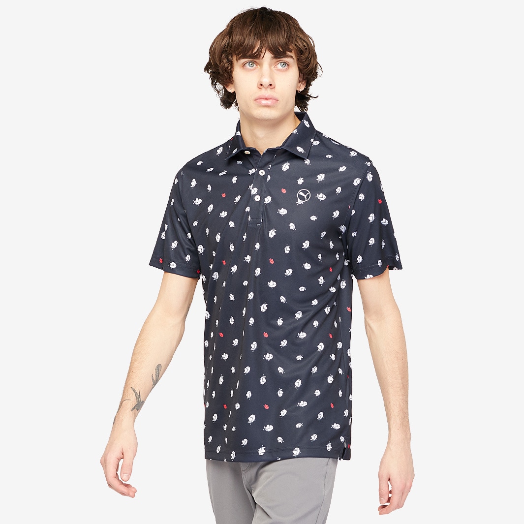Puma Pure 2.0 Birdies Golf Polo Shirt- Deep Navy/White Glow